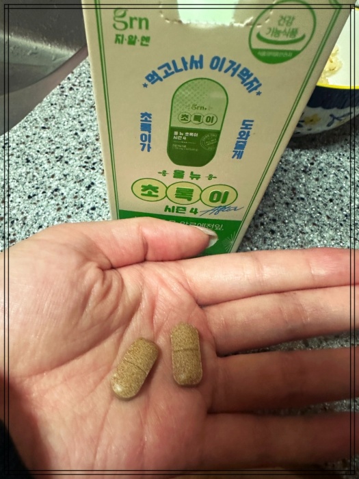 보통 집에서 저녁 식사를 마친 뒤에 초록이 2알을 챙겨 먹으면서 하루를 마무리하고 있습니다~